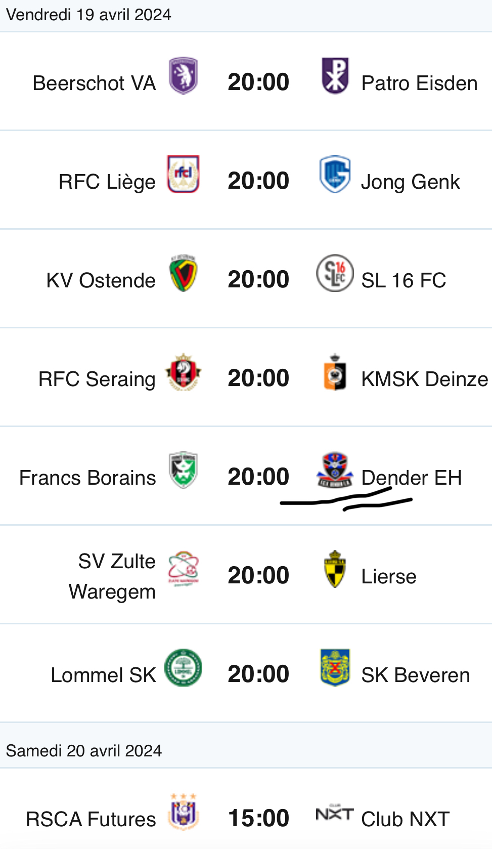 Oufti, ça, ça me ferait mal au coeur. Même si notre saison est d'ores et déjà réussie.CEW 66 a écrit : ↑14 avr. 2024, 21:51thema a écrit : ↑14 avr. 2024, 21:46On joue le tour final, si on gagne contre Genk u23 et que minimum un des résultats suivants se produisent:
